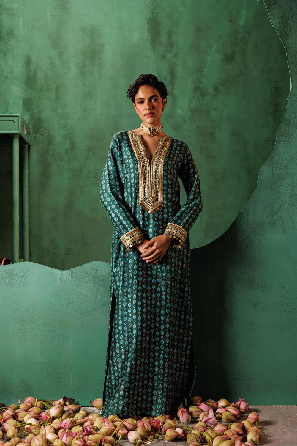 Emerald Green Print Kaftan