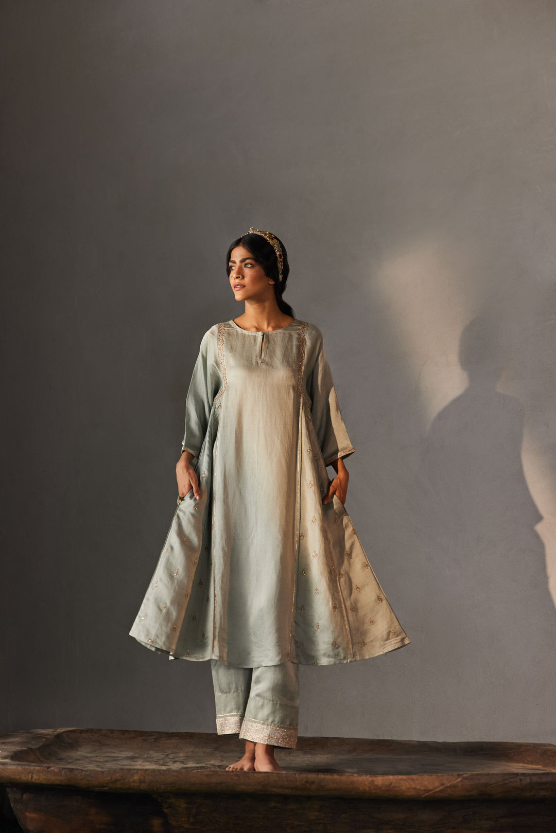 SAGE GREEN & ROSE GOLD ZARI KURTA SET